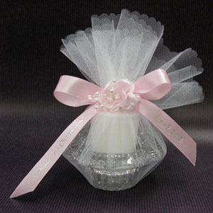 Candleholder w/scented candle wrapped in tulle ~ $4.25 Each