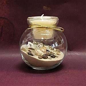 Small glass globe with sand and shells. Scented votive insert $10.00 each (assorted colors)