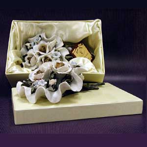Capodimonte Flower Bouquet in Satin Gift Box ~ #F1135 ~ 4.5" x 6.5" ~